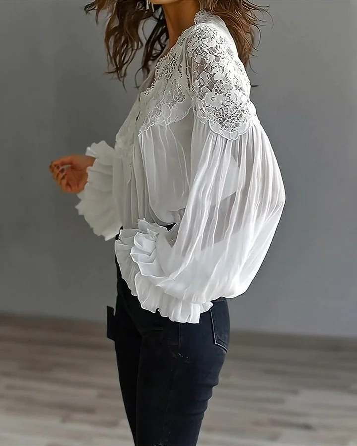 💖 Дамска риза с V-образно деколте и дантелени панели – елегантна и романтична за всеки ден ✨